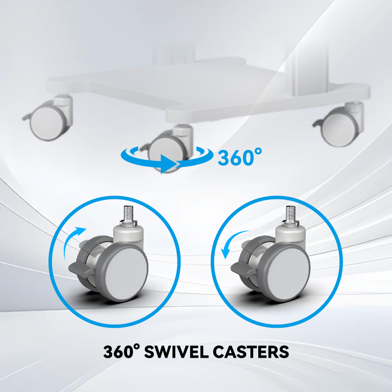 The gas spring arm provides effortless, adjustable positioning for monitors or medical devices. Its pneumatic cylinder enables smooth vertical and horizontal movement, locking securely at any desired height and angle. This enhances ergonomic flexibility and workflow efficiency in clinical settings, reducing strain during prolonged use.
