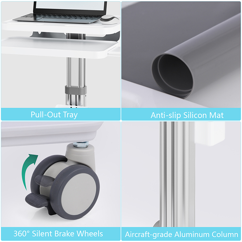 The height of the cart's column can be adjusted steplessly within a reasonable range, adapting to different working heights of operators and various usage scenarios, meeting ergonomic requirements and improving work comfort.