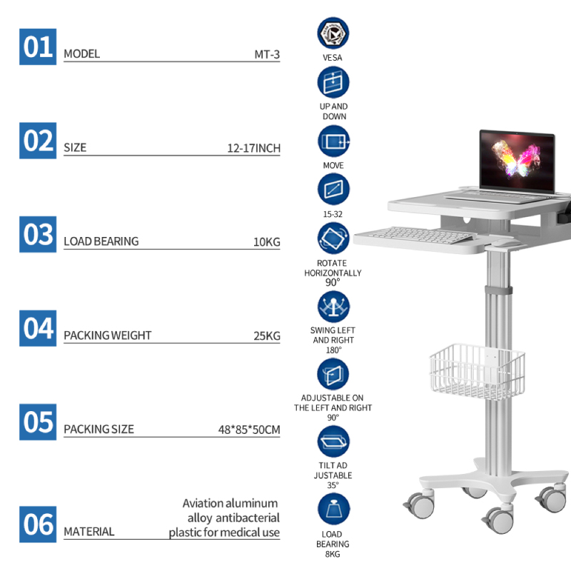 Mobile Height-Adjustable Laptop Cart for Medical and Office Use