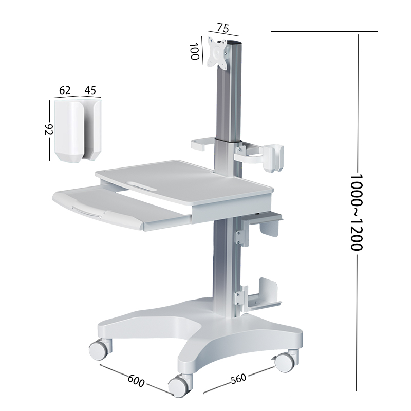 The gas spring arm provides effortless, adjustable positioning for monitors or medical devices. Its pneumatic cylinder enables smooth vertical and horizontal movement, locking securely at any desired height and angle. This enhances ergonomic flexibility and workflow efficiency in clinical settings, reducing strain during prolonged use.