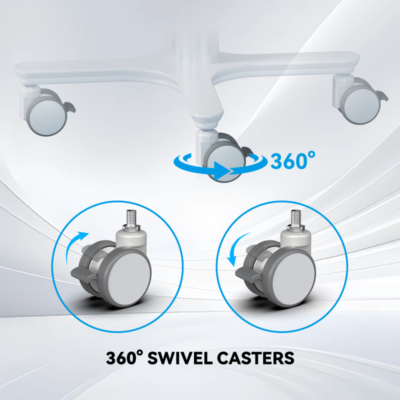 The gas spring arm provides effortless, adjustable positioning for monitors or medical devices. Its pneumatic cylinder enables smooth vertical and horizontal movement, locking securely at any desired height and angle. This enhances ergonomic flexibility and workflow efficiency in clinical settings, reducing strain during prolonged use.